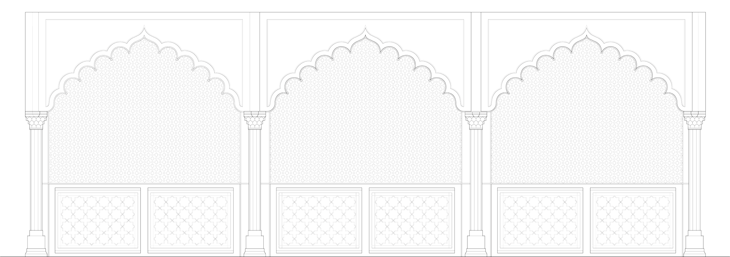 A conceputal exploration of Mughal architectural systems through structure, procession and material articulation.